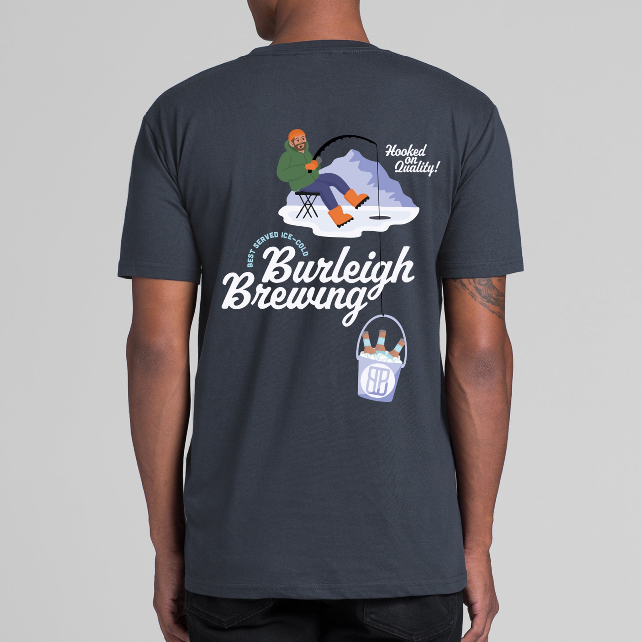 Whether you’re chasing bites or beers, the Hooked on Quality Tee has you covered. Featuring a playful ice-fishing scene on the back — complete with an esky full of frosty Burleigh brews — this tee brings a bit of cold-weather charm to your coastal wardrobe.