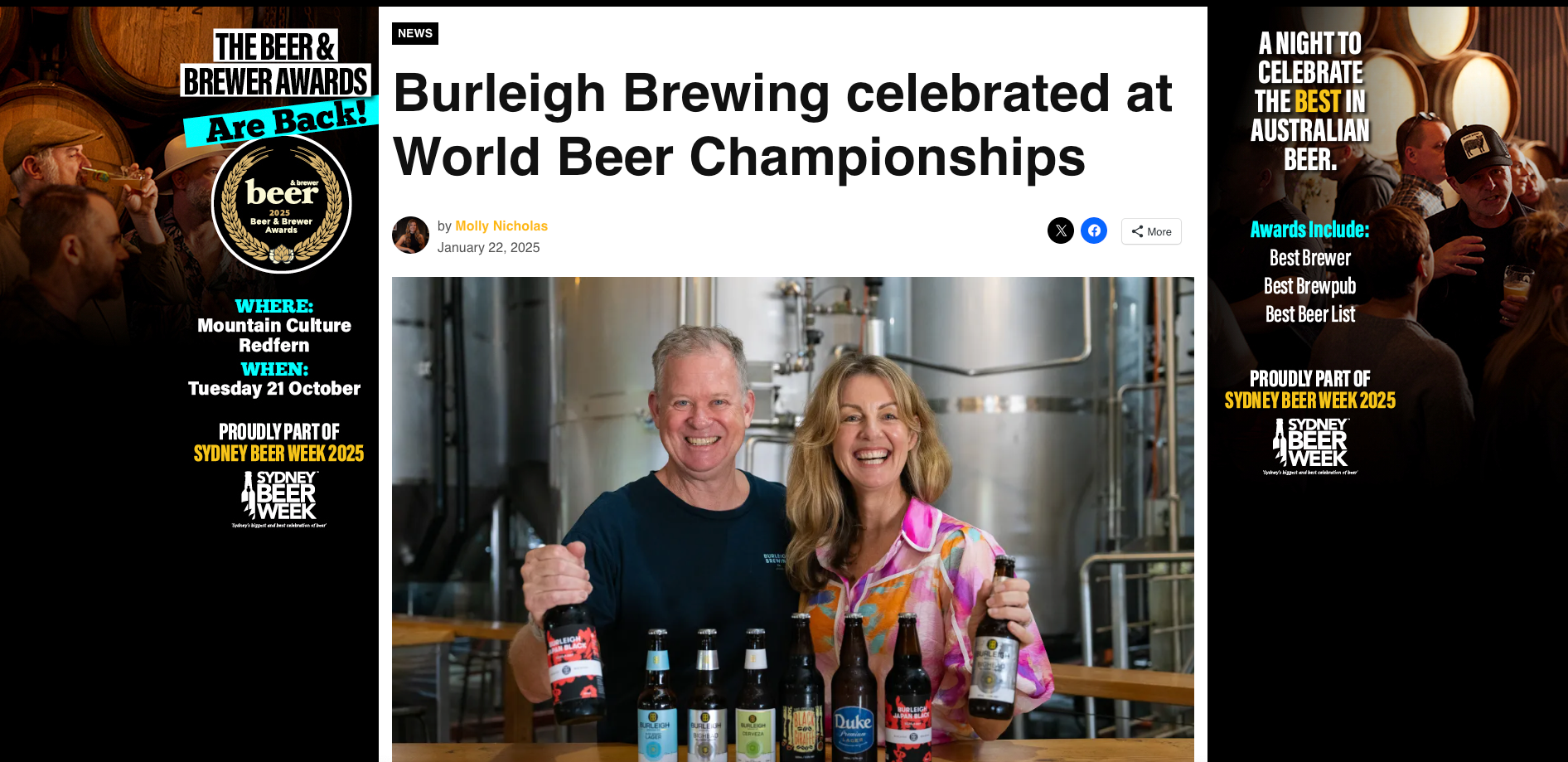 Burleigh Brewing Company: Australian beer crowned best in the world at World Beer Championships
